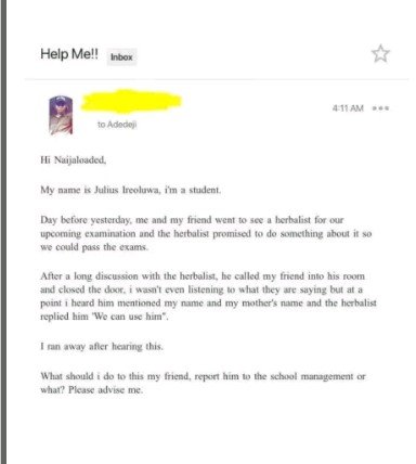A friend share what happened at a herbalist house after his friend took him there for charm to pass his exam.