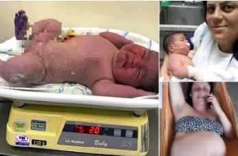 A Brazilian mother spent eight days in hospital after giving birth to a baby who weighed nearly six kilos – about half the weight of a gold bar.