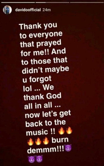 See what Davido Posted on Instagram story:-