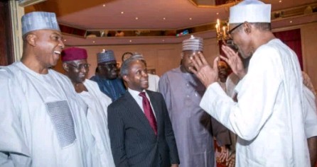 Saraki and Dogara returned to Aso Rock and were hosted to a dinner. Abba Kyari, chief of staff to the president, alongside Ita Enang and Sulaiman Kawu, presidential aides, attended the dinner.