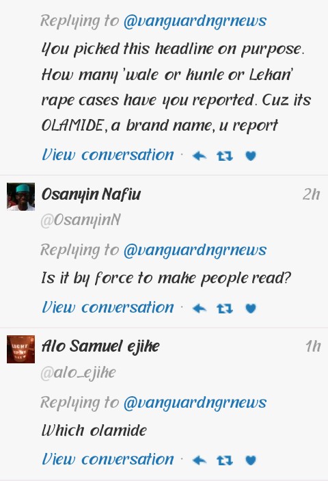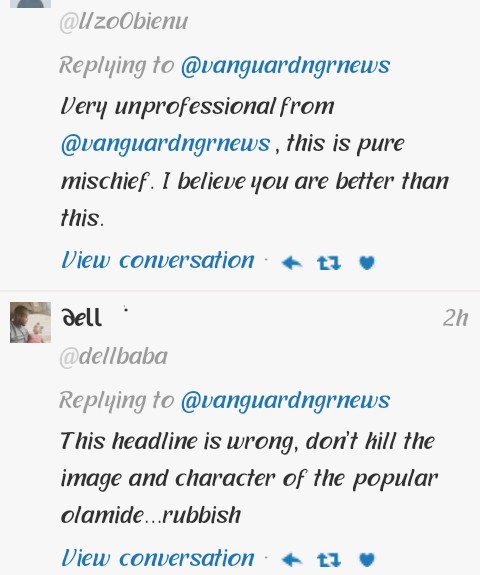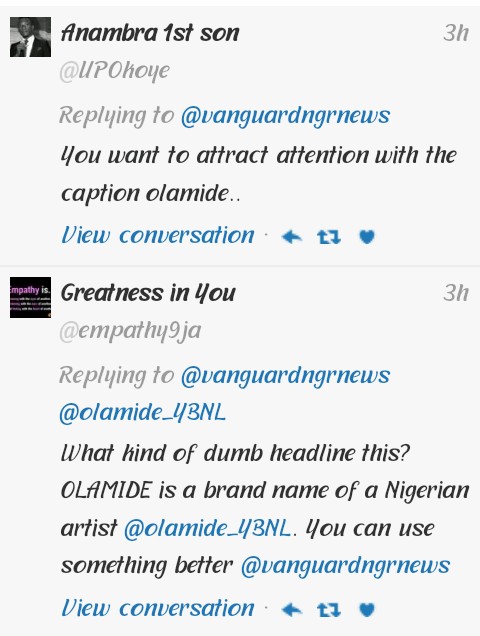 Olamide fans are not taking it lightly with vanguard newspaper twitter handle
