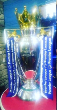 The trophy was brought in by DSTV Nigeria to ensure that EPL fans in the Country have a feel of what the trophy of their favorite Football League looks like.