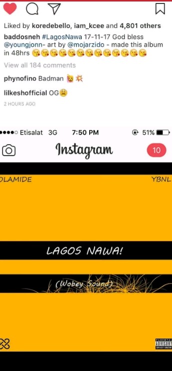 The YBNL boss shared this on his IG page, the indigenous rapper, Olamide BADDO spent only 48Hrs to produce is new album titled LAGOS NAWA. The 17 track album is set to drop on