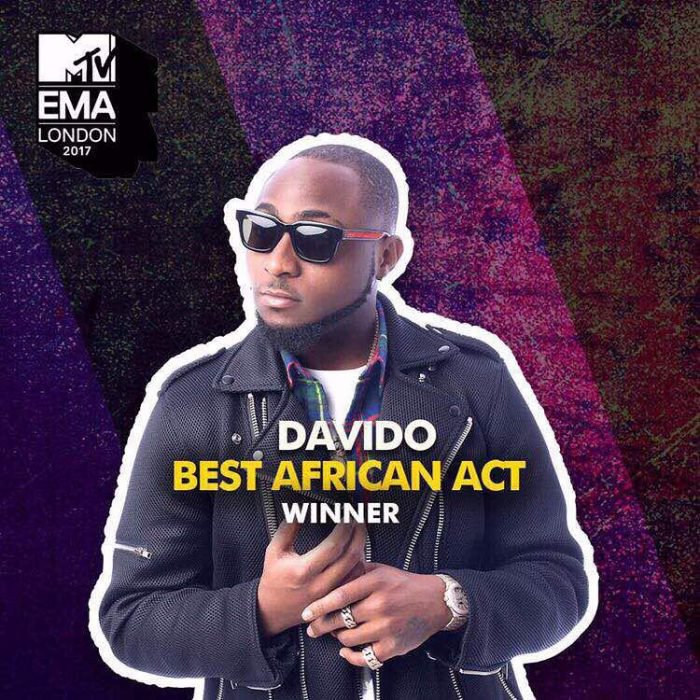 Davido emerges the winner of the best African act category in just concluded MTV EMA Award 2017 in London.