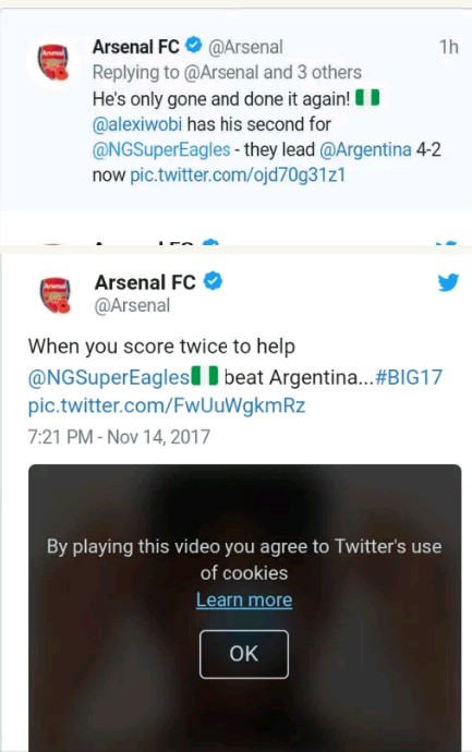Meanwhile, Arsenal FC on their twitter account congratulated Aleix Iwobi and Nigeria on the victory.