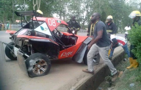 The race didn’t go as expected due to two accidents which were recorded at the beginning of the race. The first accident involved Peter Markis who carried Secretary to the State Government Hon. Abegunde in a Tigar Avon Car. It was a lucky Saturday for the SSG as no injury was sustained but the sport Car almost got burnt and the engine got damaged .