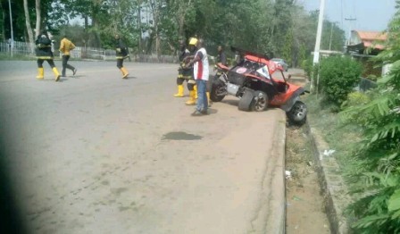 The second accident involved Olumuyiwa Akintola whose the tyres of his car busted on motion. This occurred immediately after the round about, he was lucky not to have sustained any injury. According to him, he had similar accident last year at Lagos..