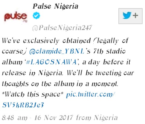 It’s no news that Olamide 7th studio album will be out on 17th of November, 2017. and pulse Nigeria has a given an insight clue on what’s on the album from track 1 to the last. Check track list HERE.