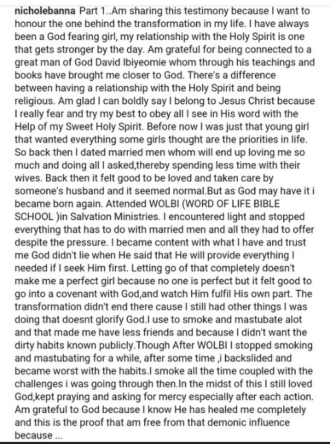 Nollywood actress, Nichola Banna, took to her Instagram page to confess about things she used to do before she met Christ & became a born again.