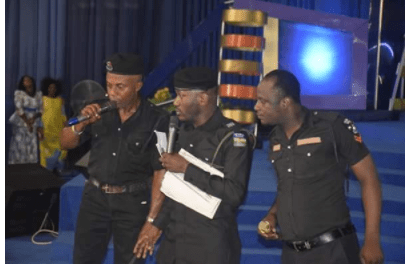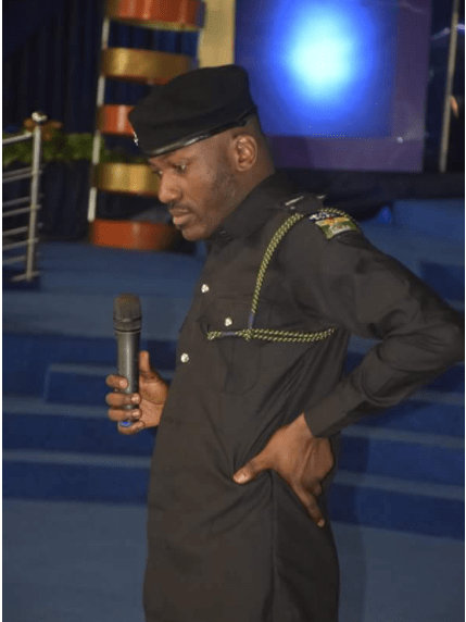 Senior Pastor of the Omega Fire Ministries Worldwide (OFM), Apostle Johnson Suleman, surprised his congregation earlier today when he attended service in a police uniform during.