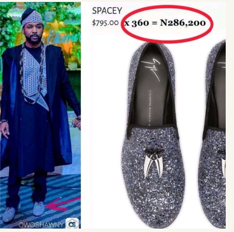 Singer And Actor,Banky W rocked a giuseppe zanotti ”Spacey” footwear worth $795.00 for his traditional wedding with actress Adesua Etomi held on Saturday.