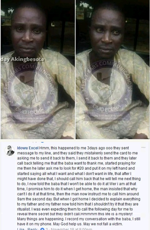 When the person sends the airtime back, the ‘Baba’ who will pretend to be grateful – would call he or she back and start praying in pretense that he is blessing the person for returning the airtime. It is through this prayer format that he gets and traps his victim.