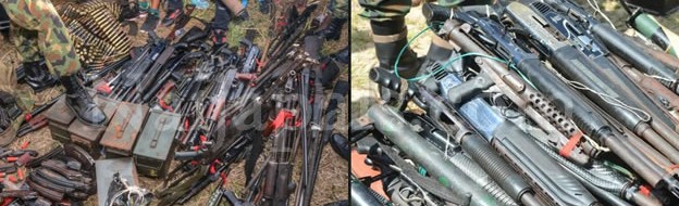 Also, military uniforms, police bullet proof vests, dynamites , bombs and helmets were submitted.