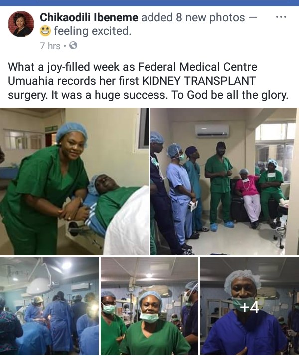 FMC Umuahia has recorded her first successful kidney transplant surgery.A staff of the hospital named Chikaodili took to Facebook to share the good news and wrote :