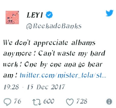 Do you agree with Reekado Banks’ statement that albums are not appreciated anymore?